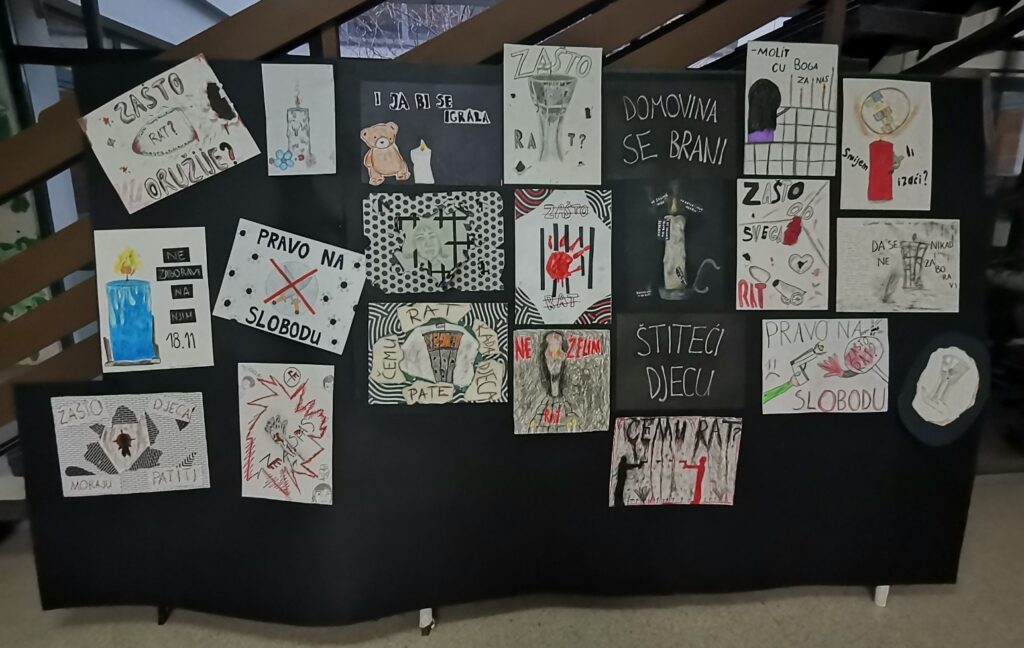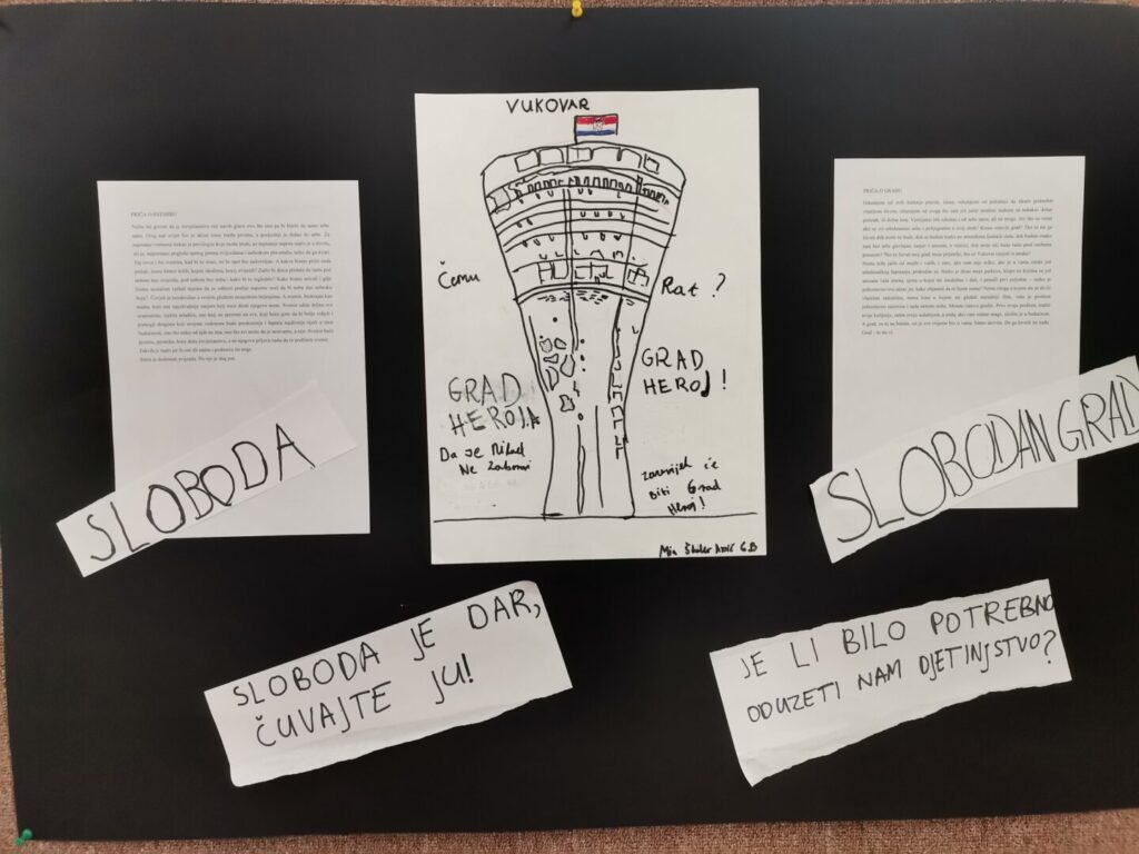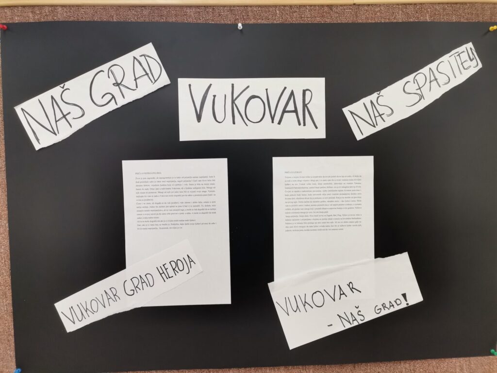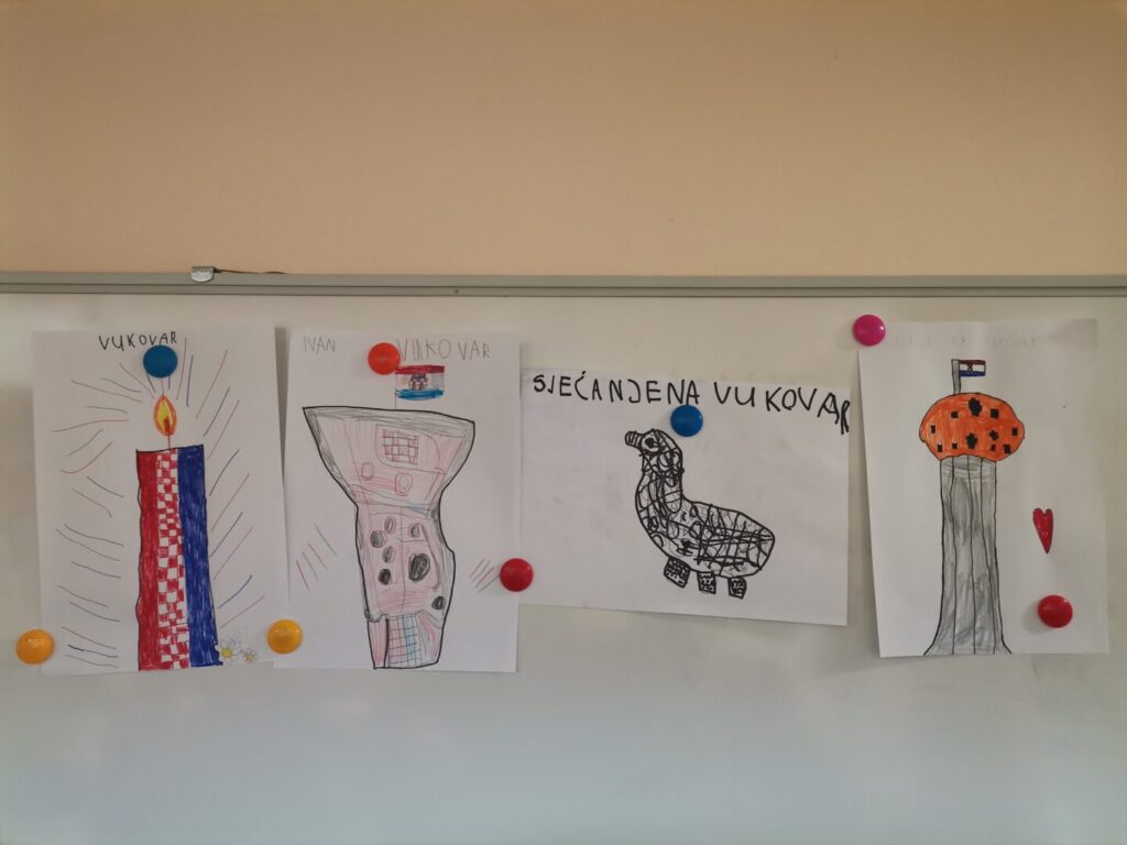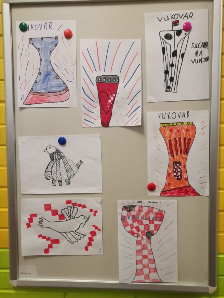 Cijela Hrvatska 18. studenog obilježava Dan sjećanja na žrtve Domovinskog rata te Dan sjećanja na žrtvu Vukovara i Škabrnje. Od početka studenog učenici naše škole sa svojim učiteljima razgovaraju o Domovinskom ratu (1991. – 1995.) i ratnom putu kojim smo morali proći da bismo izborili svoju samostalnost. Posebno se prisjećamo Vukovara koji je iznio najveću žrtvu za domovinu. Tijekom borbi i nakon ulaska okupatora u grad, poginulo je oko 880 branitelja, 1 000 civila, mnogi su završili u logorima, dok ih se nekoliko stotina vodi na popisu nestalih. Isti dan na jugu Hrvatske stradalo je mjesto Škabrnja gdje su na okrutan način ubijena 84 Hrvata. Gradu Heroju te Škabrnji posvetili smo svoje kreativne radove s porukama mira.